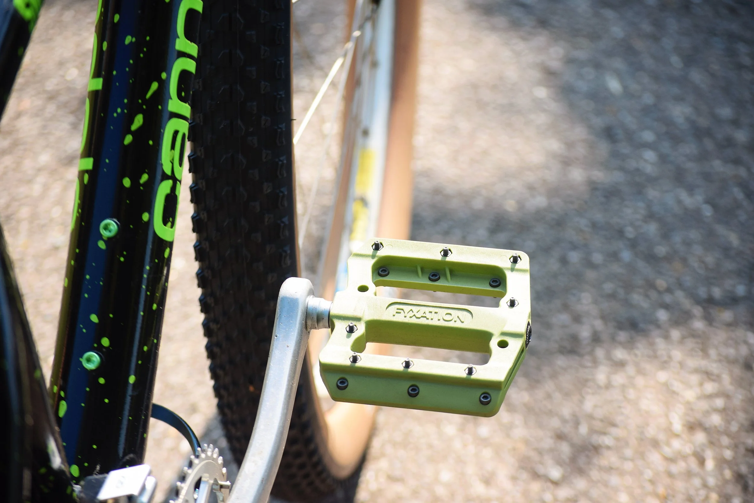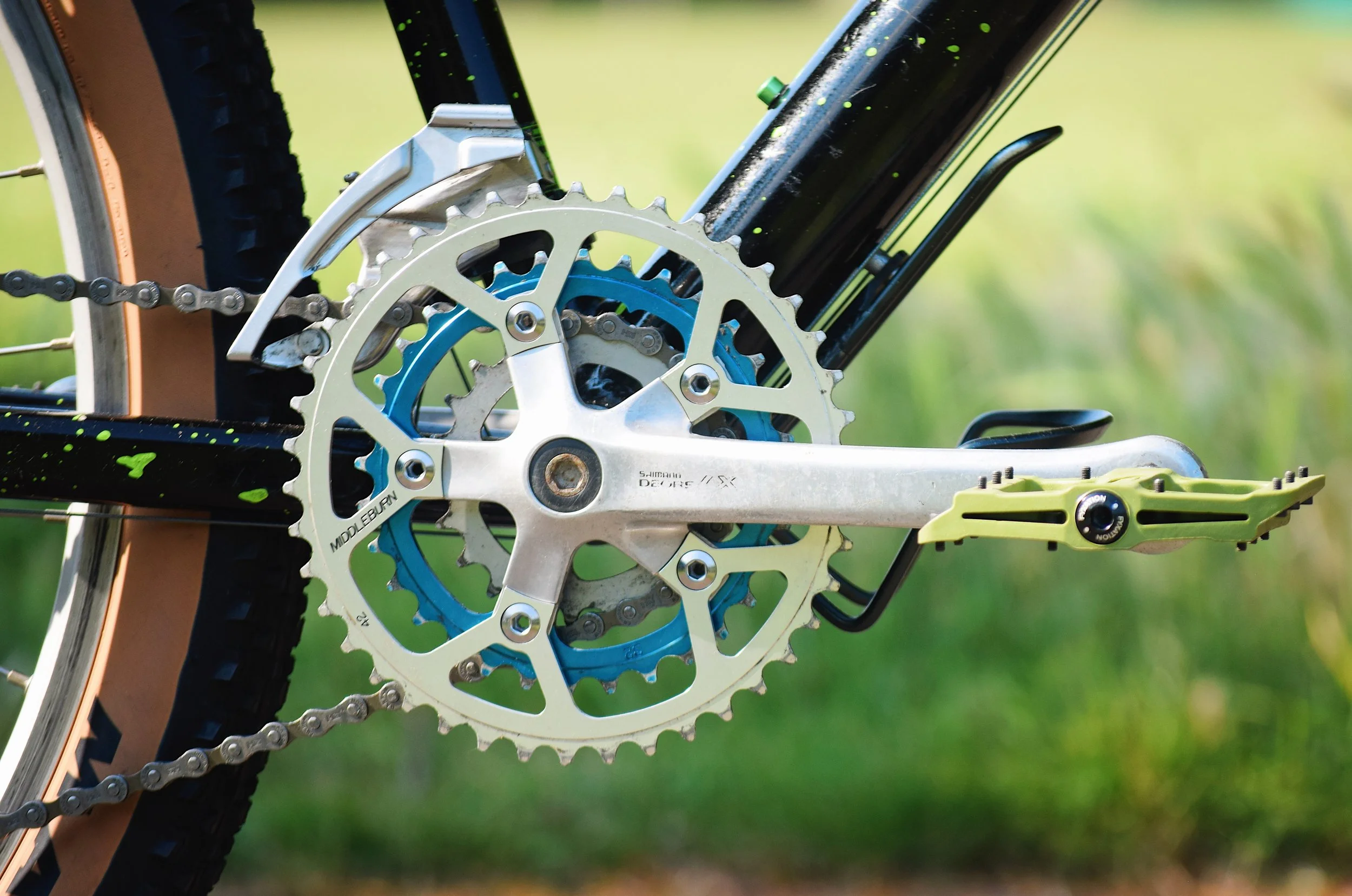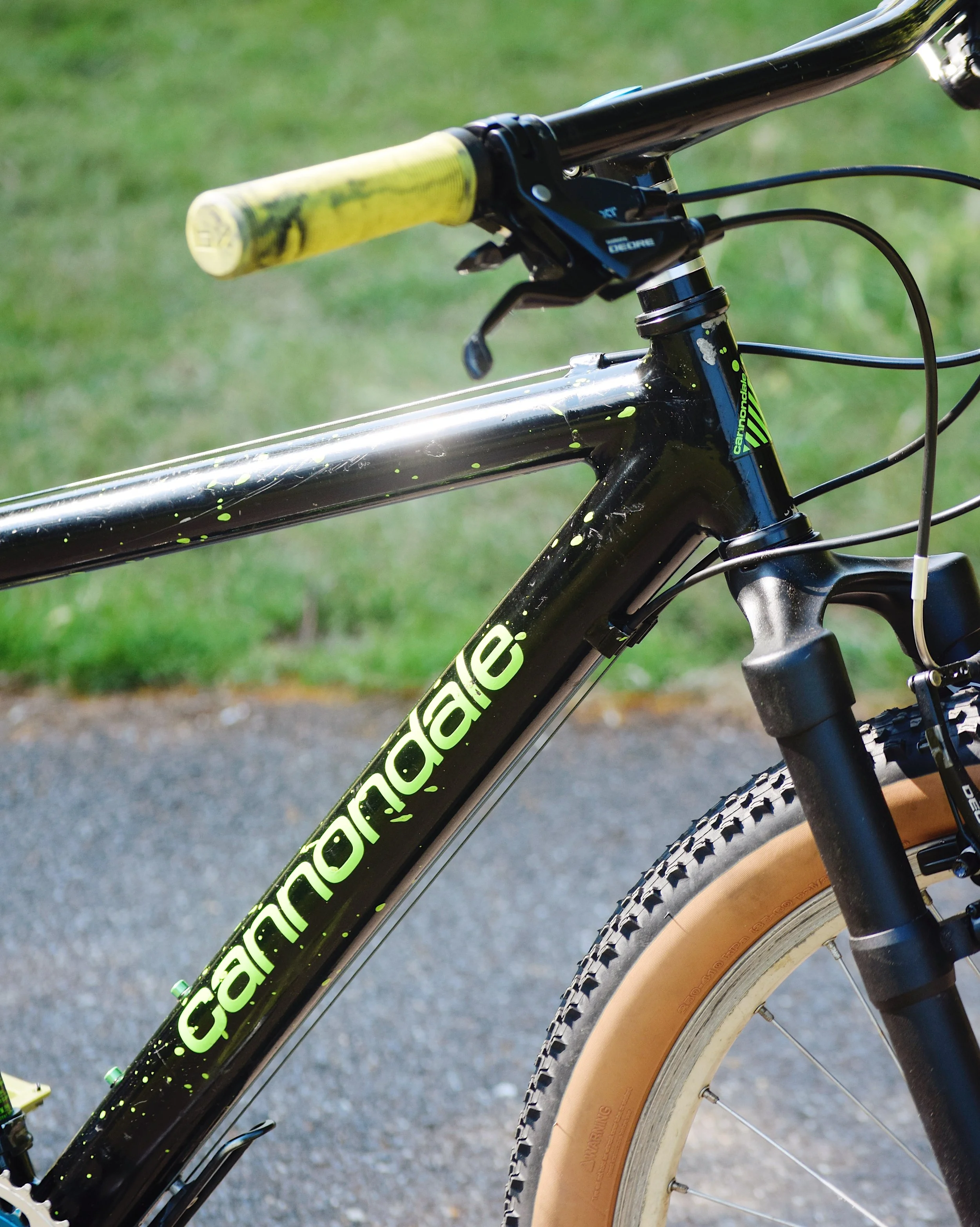Introducing a completely re-visited mid 90’s Cannondale SM 700 aluminium mountain bike, in black and speckled green. Heaps of panache everywhere with Shimano XT 8x3 groupset, Nitto bullmouse bars, Middleburn chainrings and an Exotic rigid alu fork.