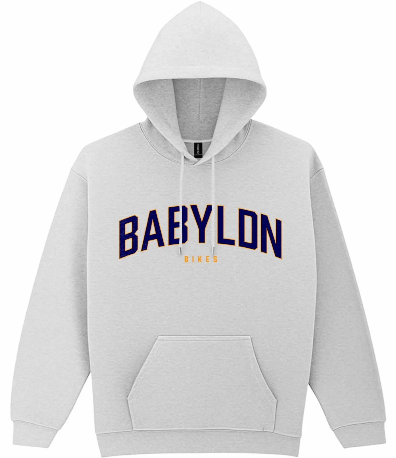 BABYLDN BIKES ‘Gildan Heavy Blend’ Varsity Hoodie screen printed by DONE.LONDON. Pre-order available for collection at the Babyldn x Brooks Bike Jumble of the 18th of October between 12-4pm (google maps Babyldn.bikes for location).